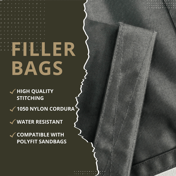 COMPATIBLE WITH POLYFIT SANDBAGS. The filler bag is compatible with Polyfit Sandbags or other similar sand bags. Only the replacement filler bag is included with purchase; the sandbag is not included.