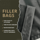 AVAILABLE IN 3 SIZES. Filler bags come in 3 sizes: Small (30lbs capacity), Medium (50lbs capacity), and Large (65lbs capacity).