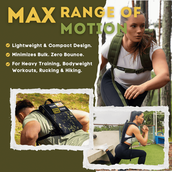 Compatible with Polyfit Weight Plates and standard-sized 10x12 cast iron rucking weight plates. Maximum load capacity up to 40 lbs.